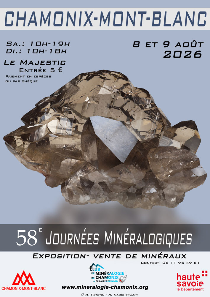 N.B. : le Club de Minéralogie de Chamonix n’organise pas de sortie sur le terrain dans le massif du Mont-Blanc, pour des raisons évidentes de sécurité (haute montagne) et de responsabilité (diplômes d’état…). Merci de contacter éventuellement la Compagnie des Guides de Chamonix.